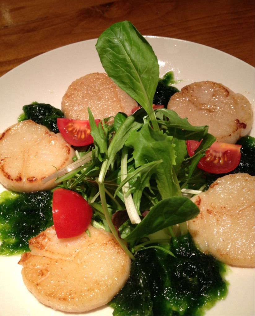 「帆立ソテー あおさ海苔ソース」