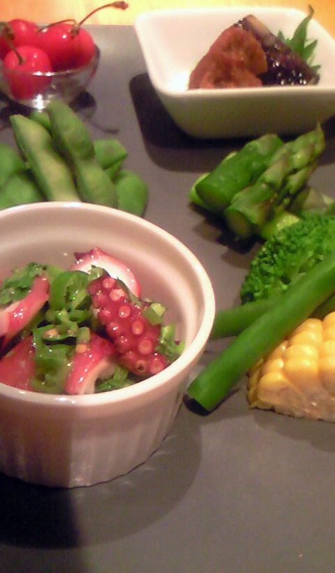 「ゆで野菜の自家製ゴマドレ ¥500」